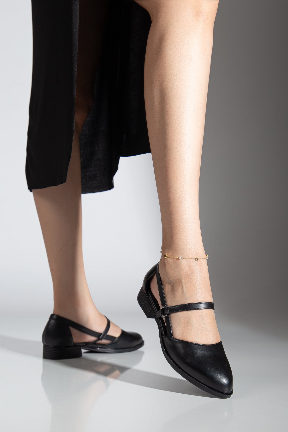 ? Heel Height: 2 cm (Including Sole) ? Model's Foot: Size 37 ? Shoe Length: 24 cm ? Material: Imported Faux Leather ? Detail: Buckle ? Insole Material: Imported Faux Leather ? Mold: Standard Full Mold ? Inner Lining: Antibacterial and Antiperspirant ---------------------------------------------------------------------------- ? It is recommended to order 1 size larger for wide and wide feet ? Breakage of the sole is prevented with a steel bridge.; ; ? The exact products that will be sent to you are used in the visual.; ; ? Manufactured in Türkiye with first class quality.; ; ? It does not contain any carcinogenic substances.; ; ? The use of images is strictly prohibited.;