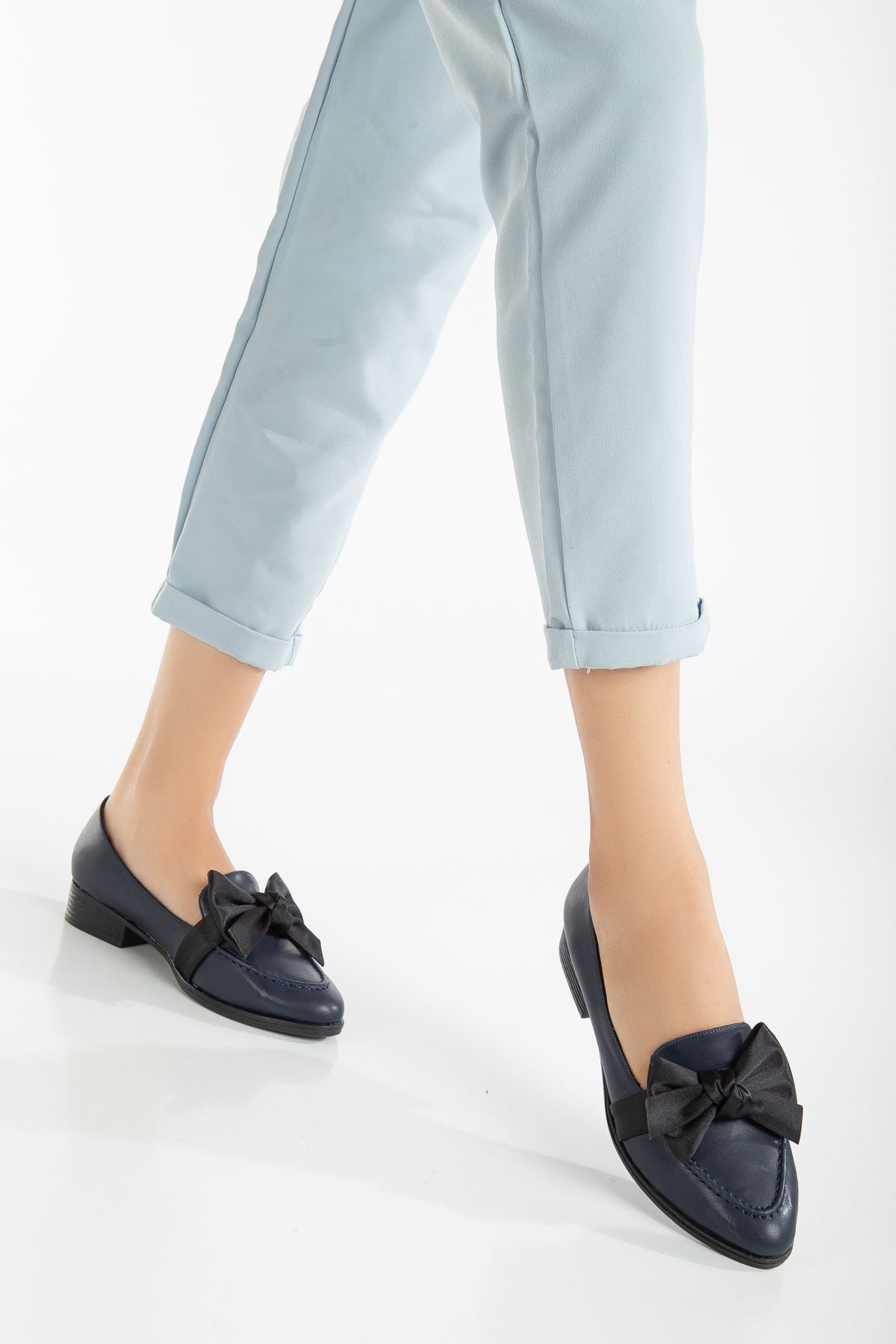 Erva Kısa Topuk Cilt Ayakkabı Lacivert