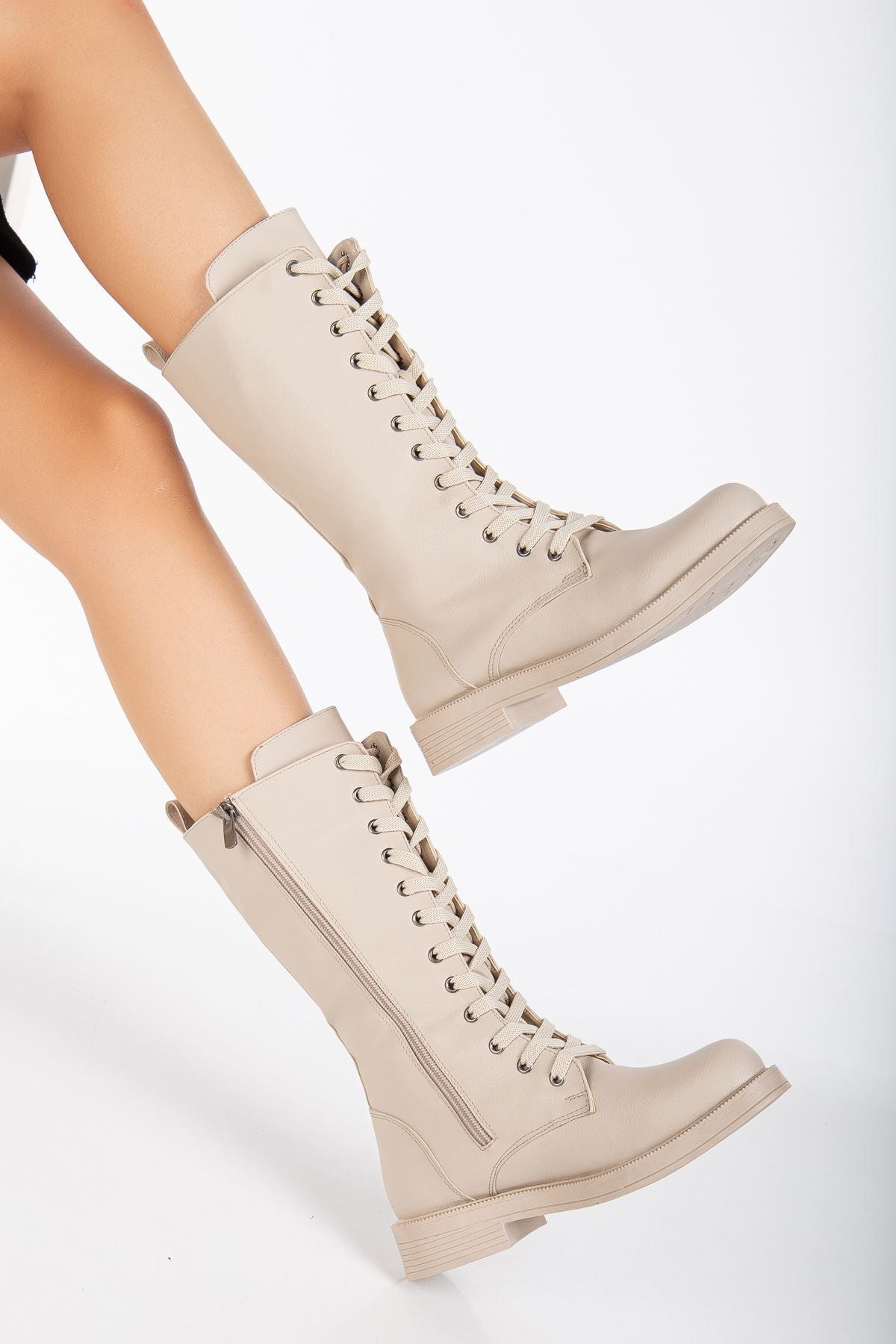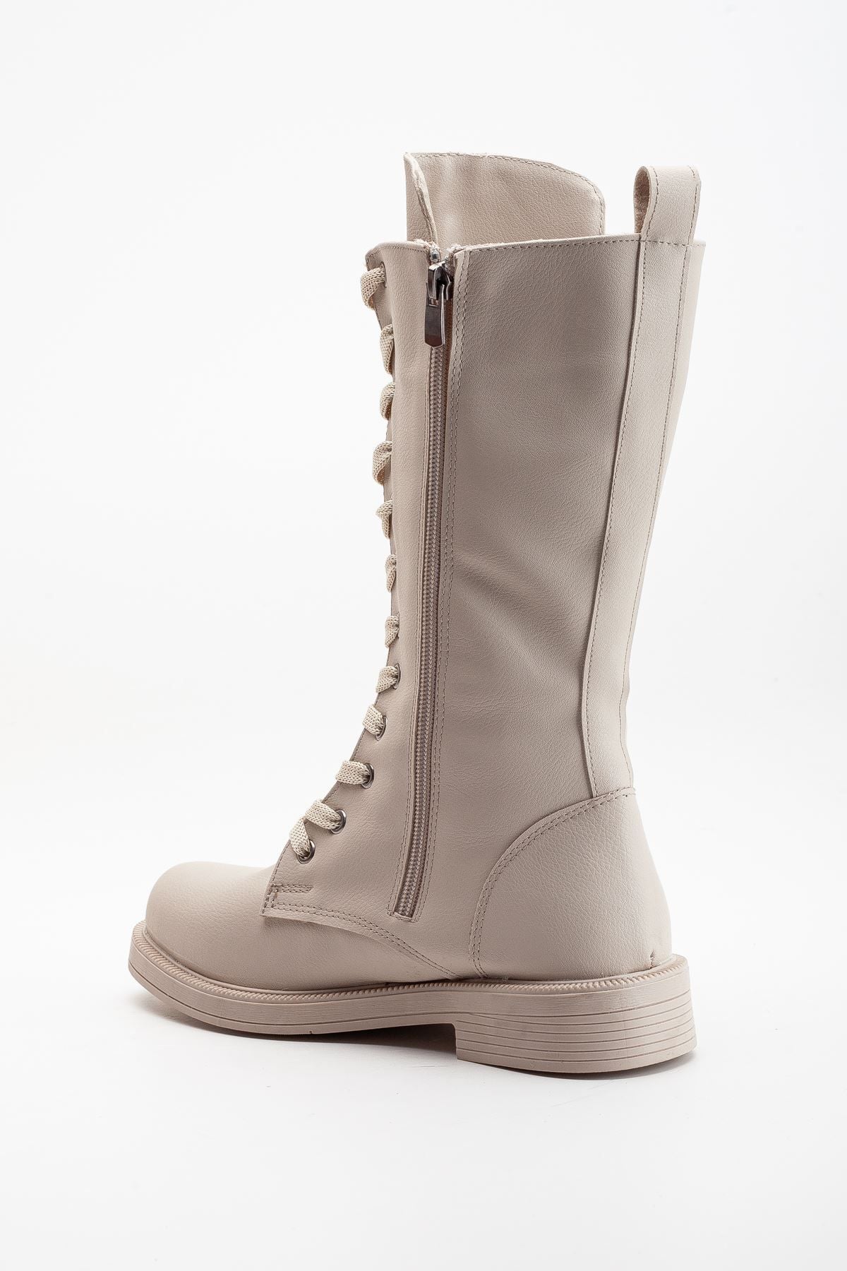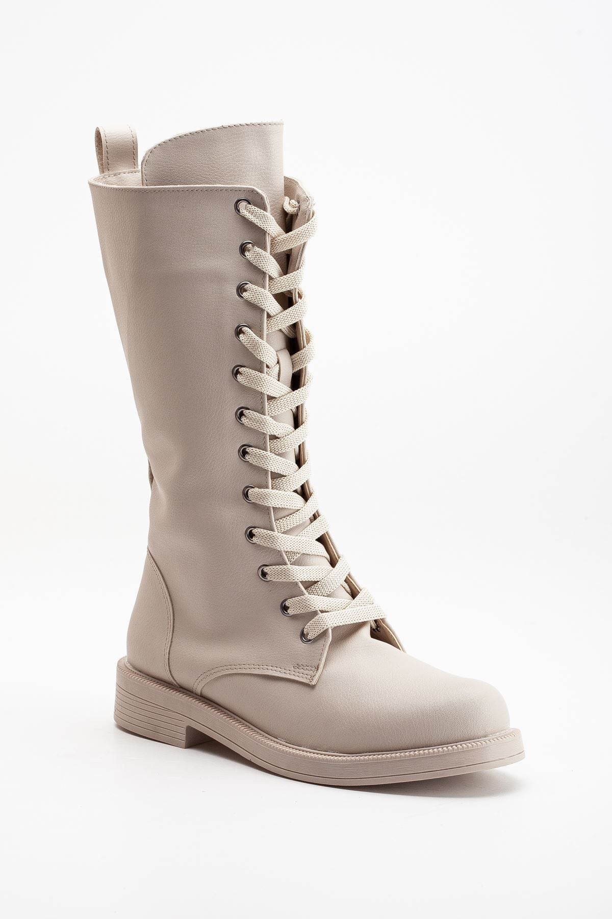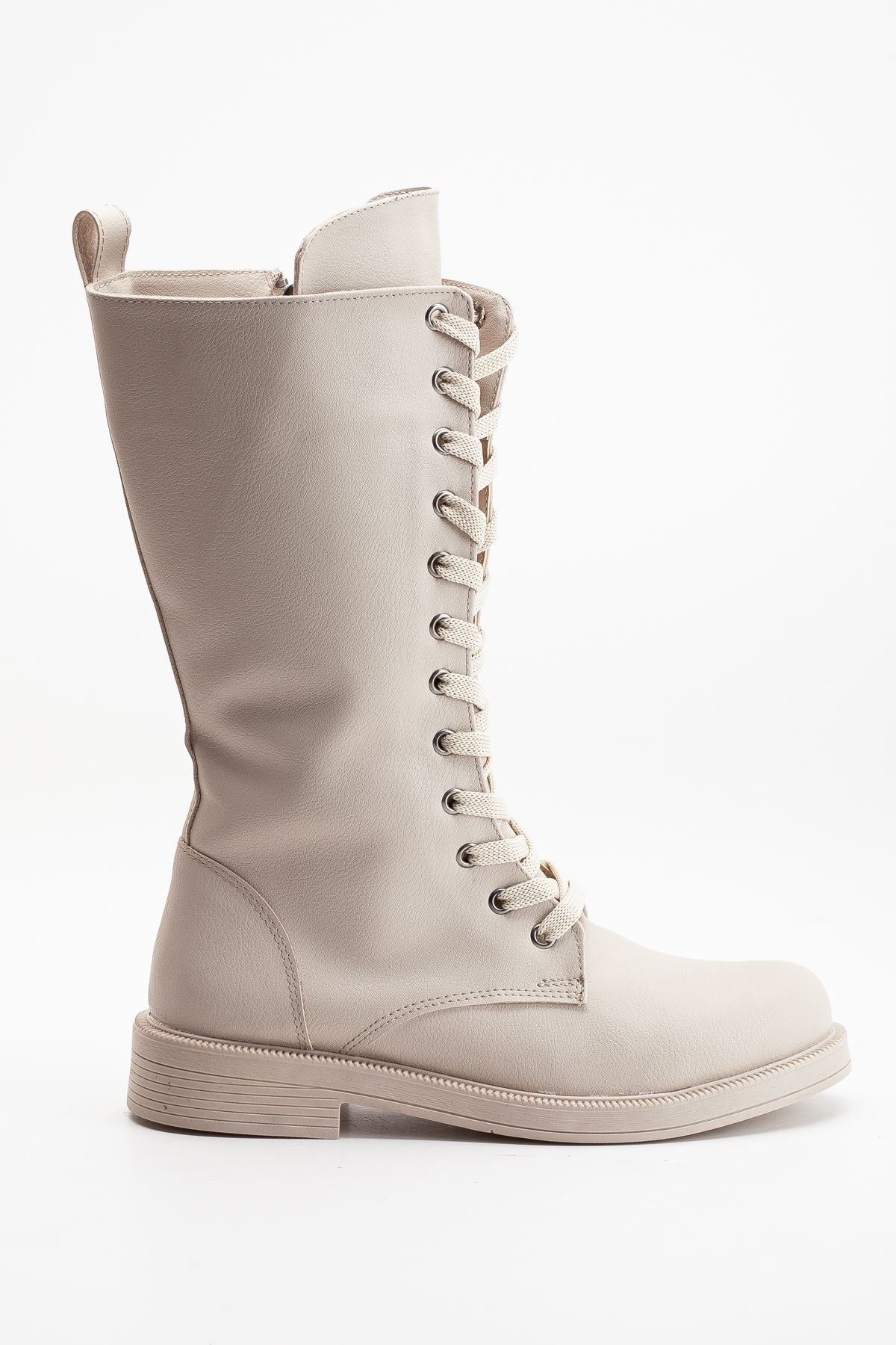 Pamira Bağcıklı Deri Çizme Bej