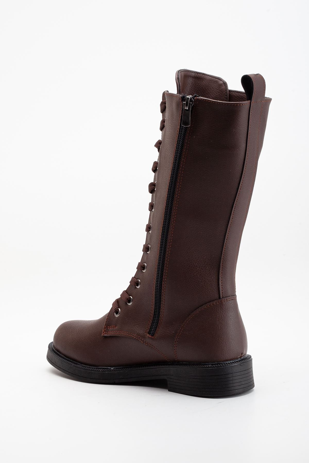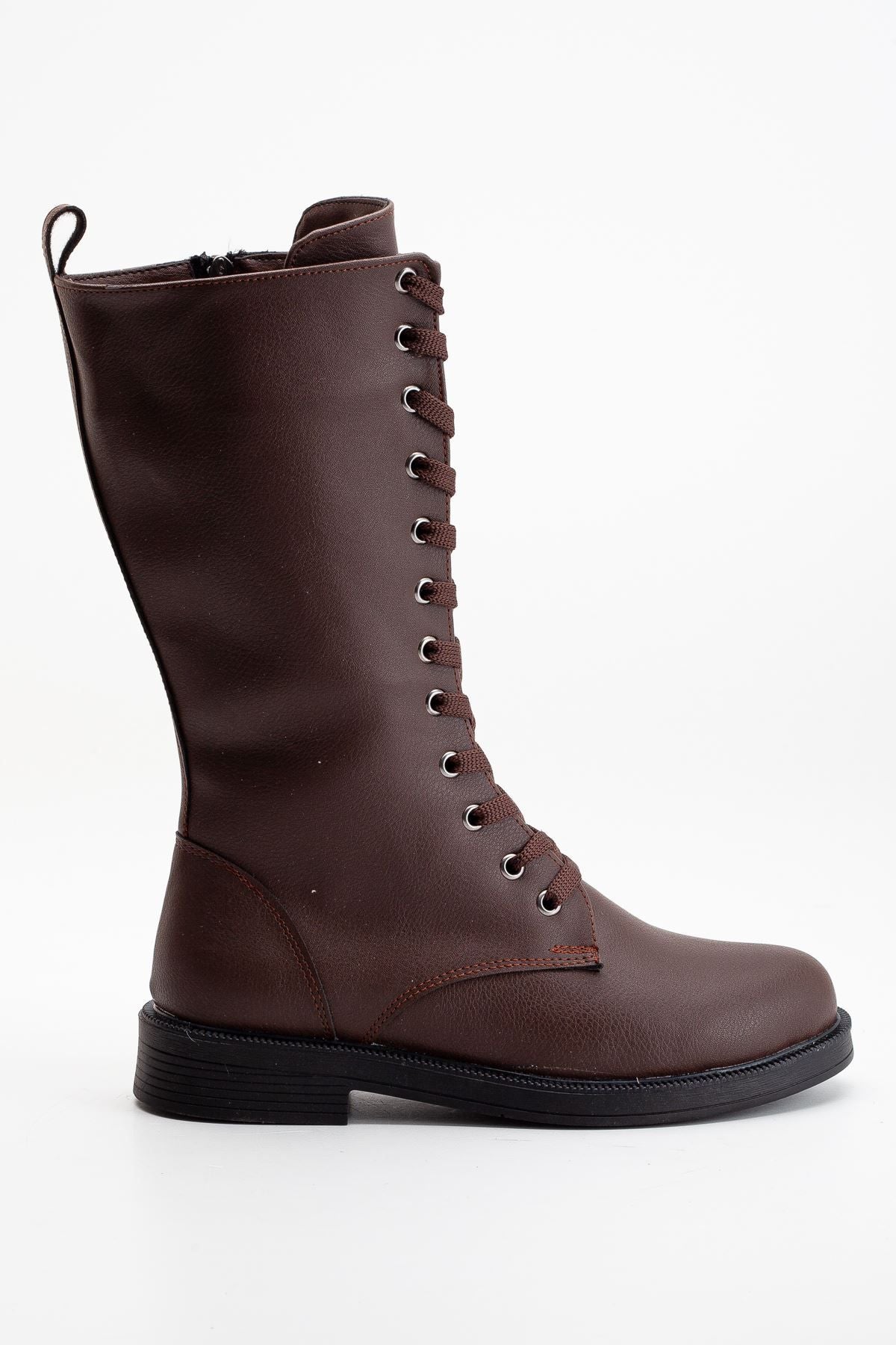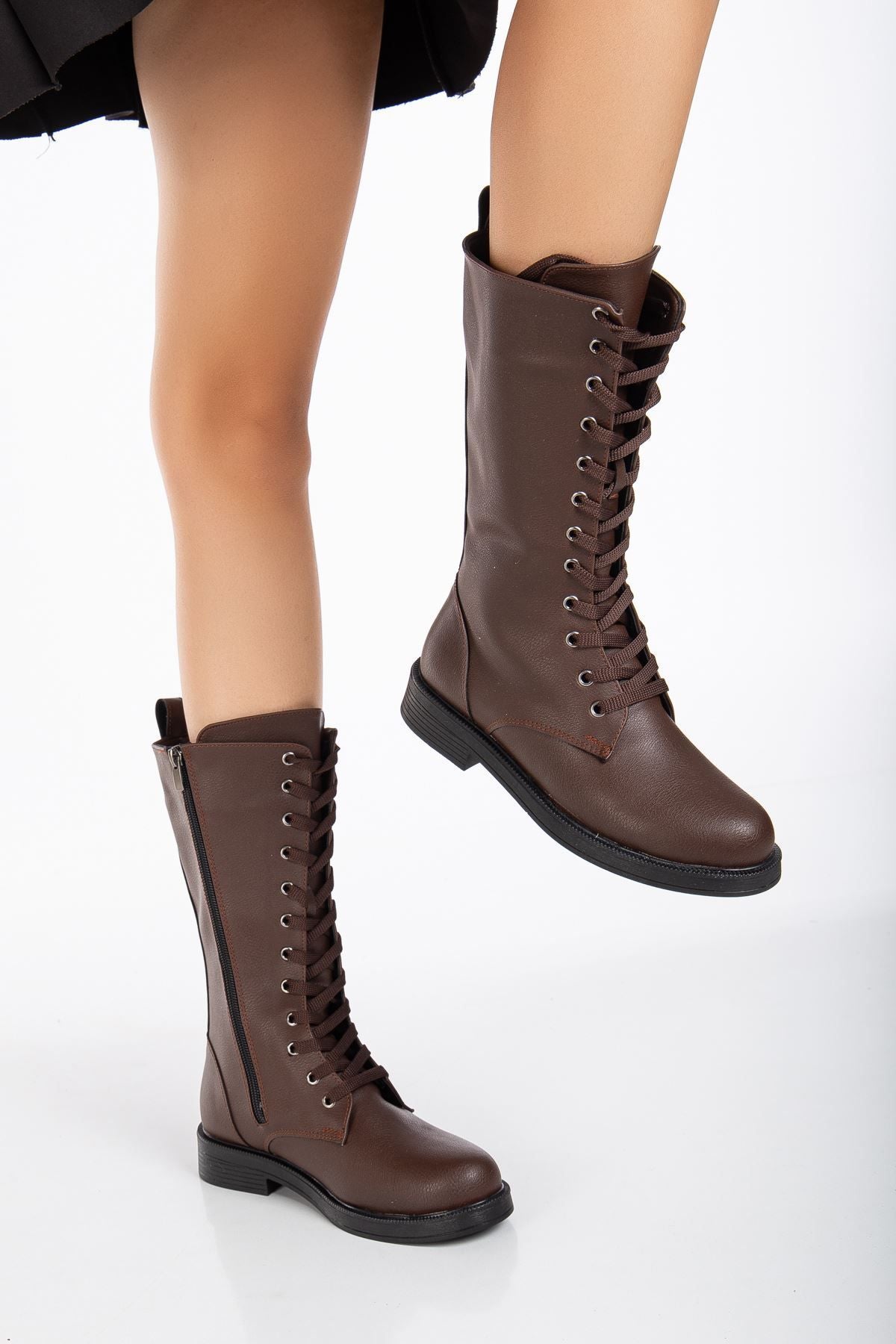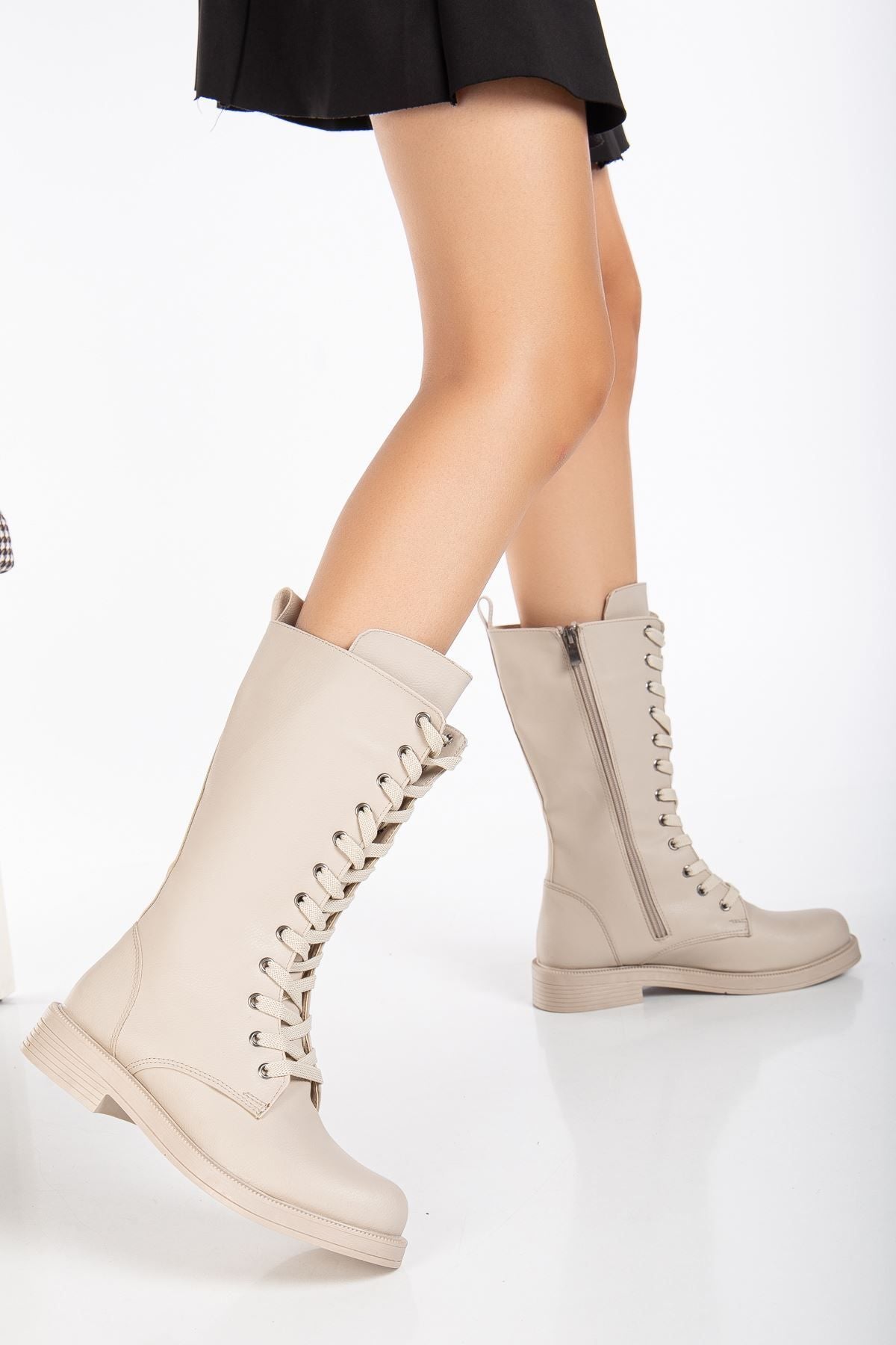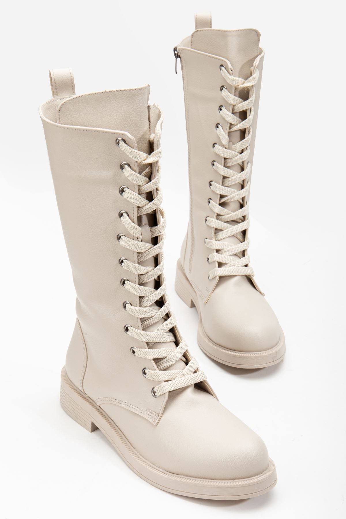 Pamira Bağcıklı Deri Çizme Bej