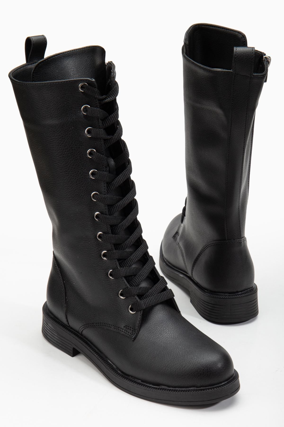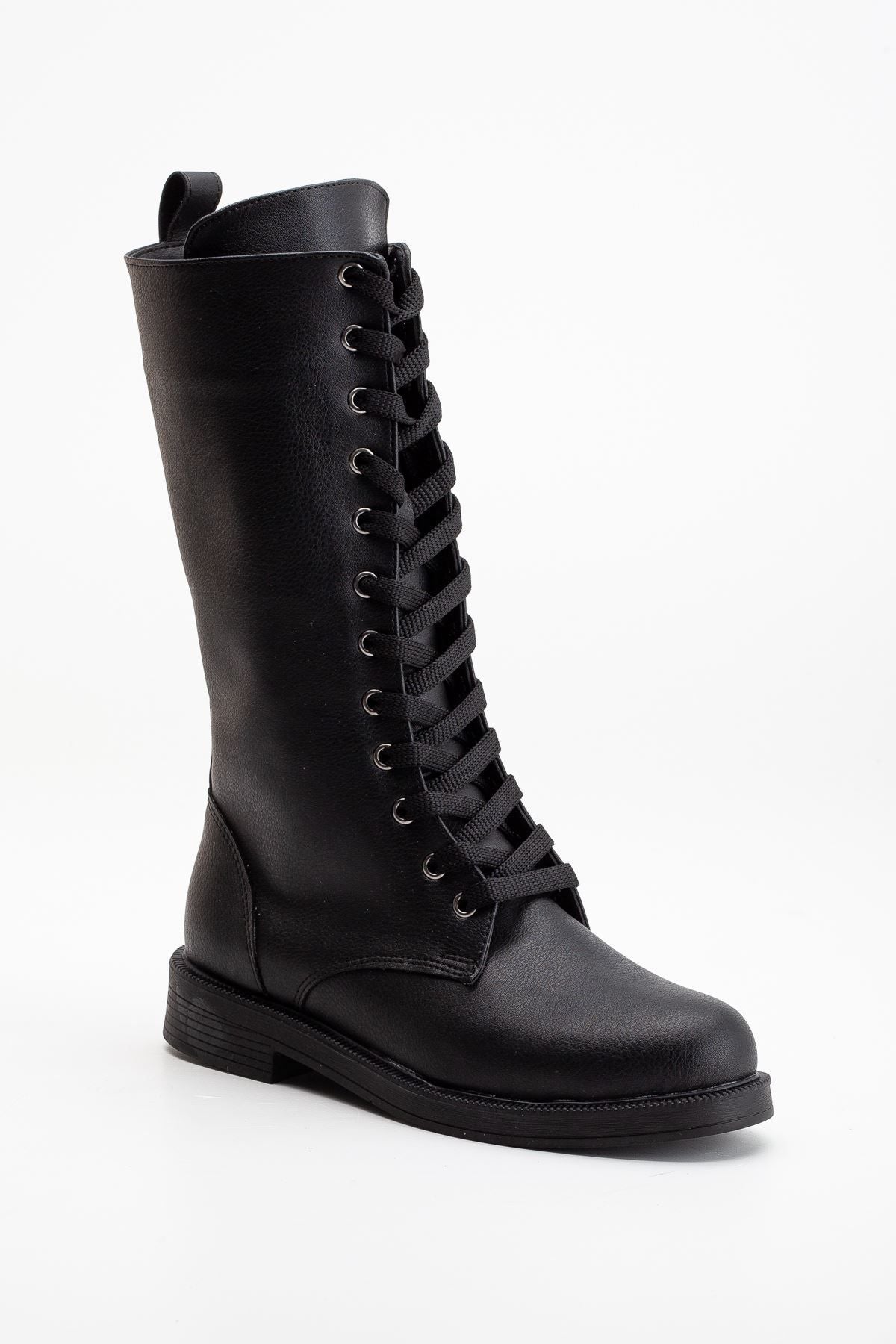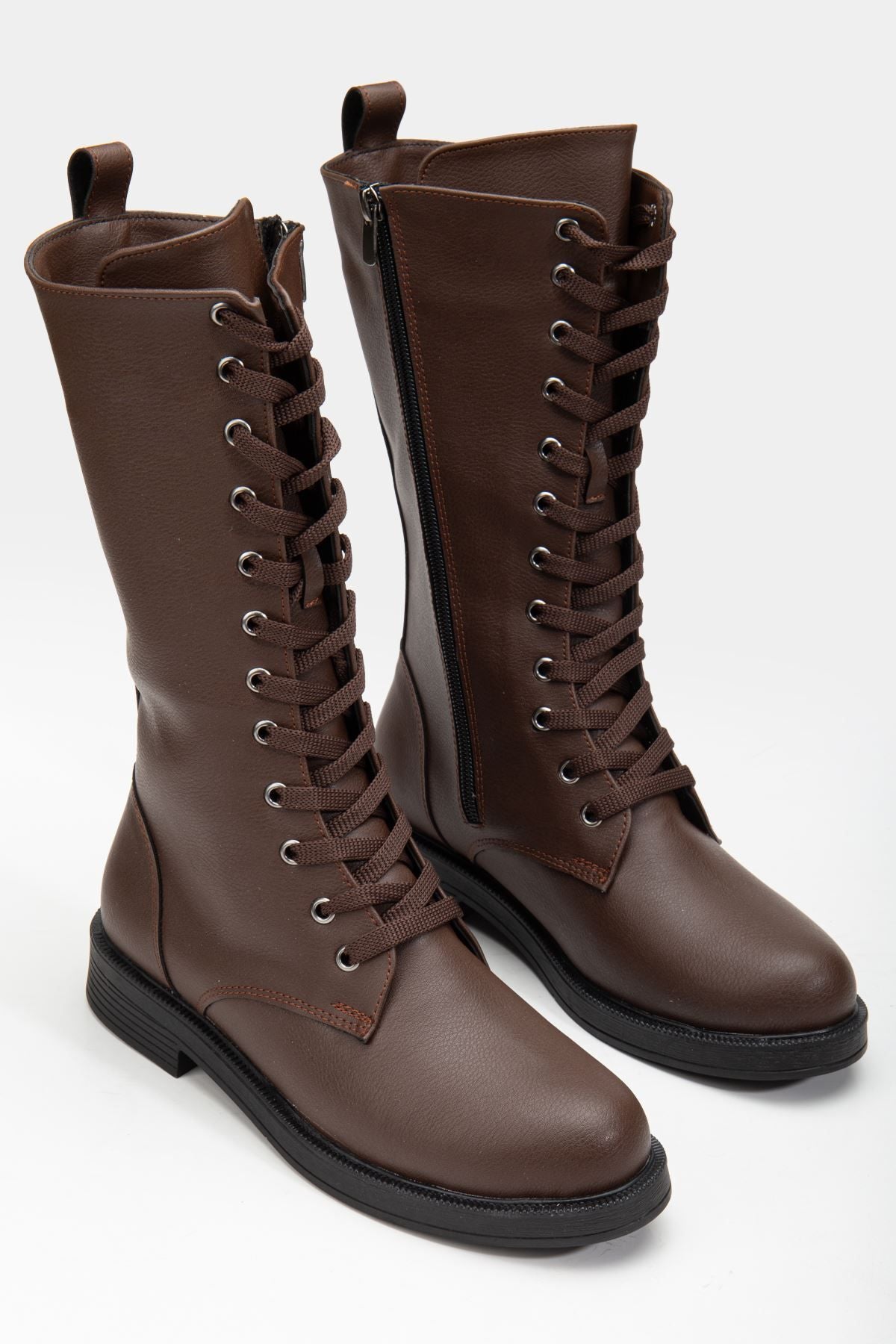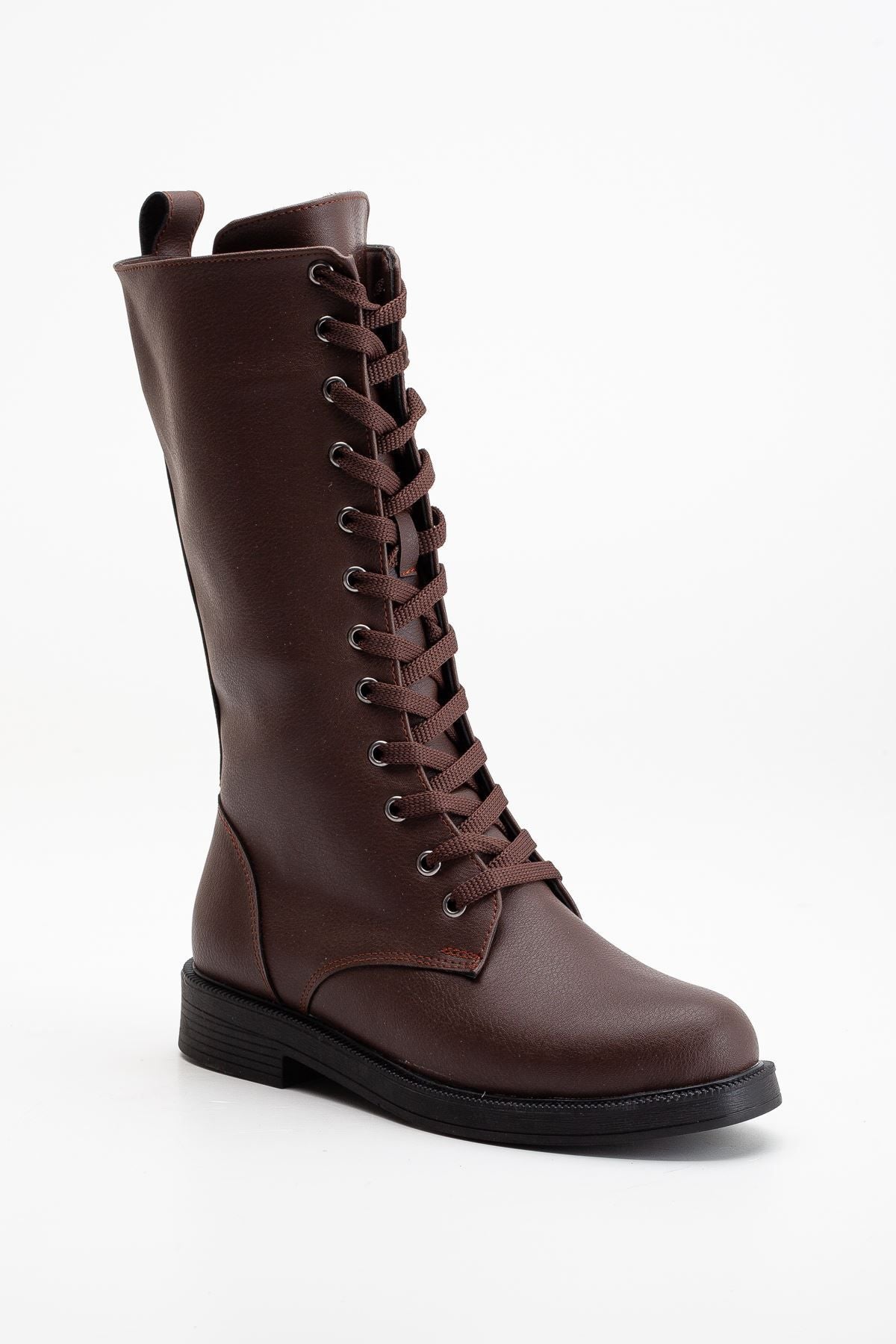 Pamira Bağcıklı Deri Çizme Bej