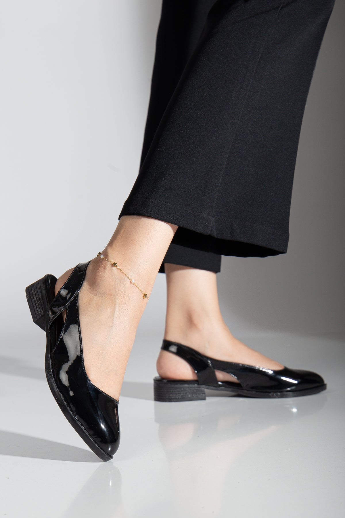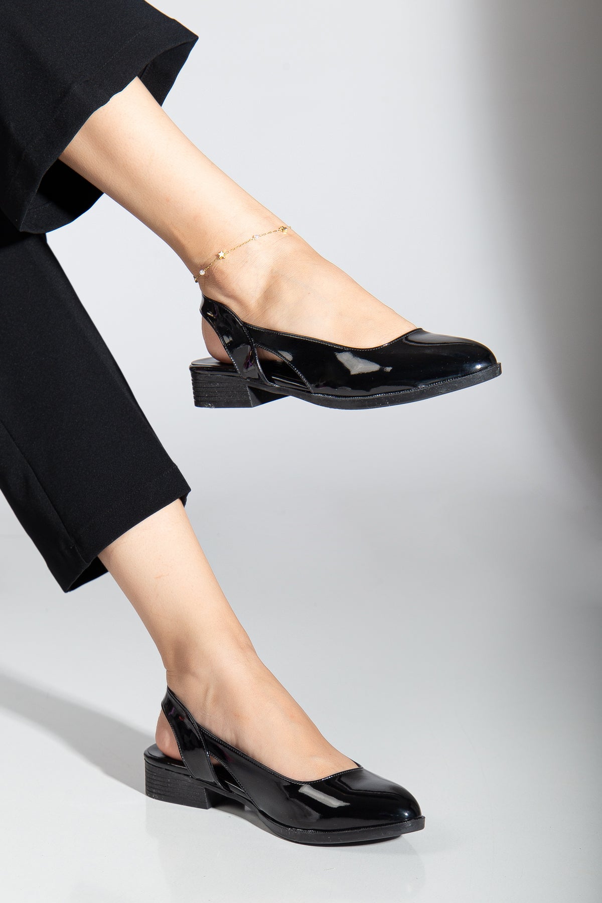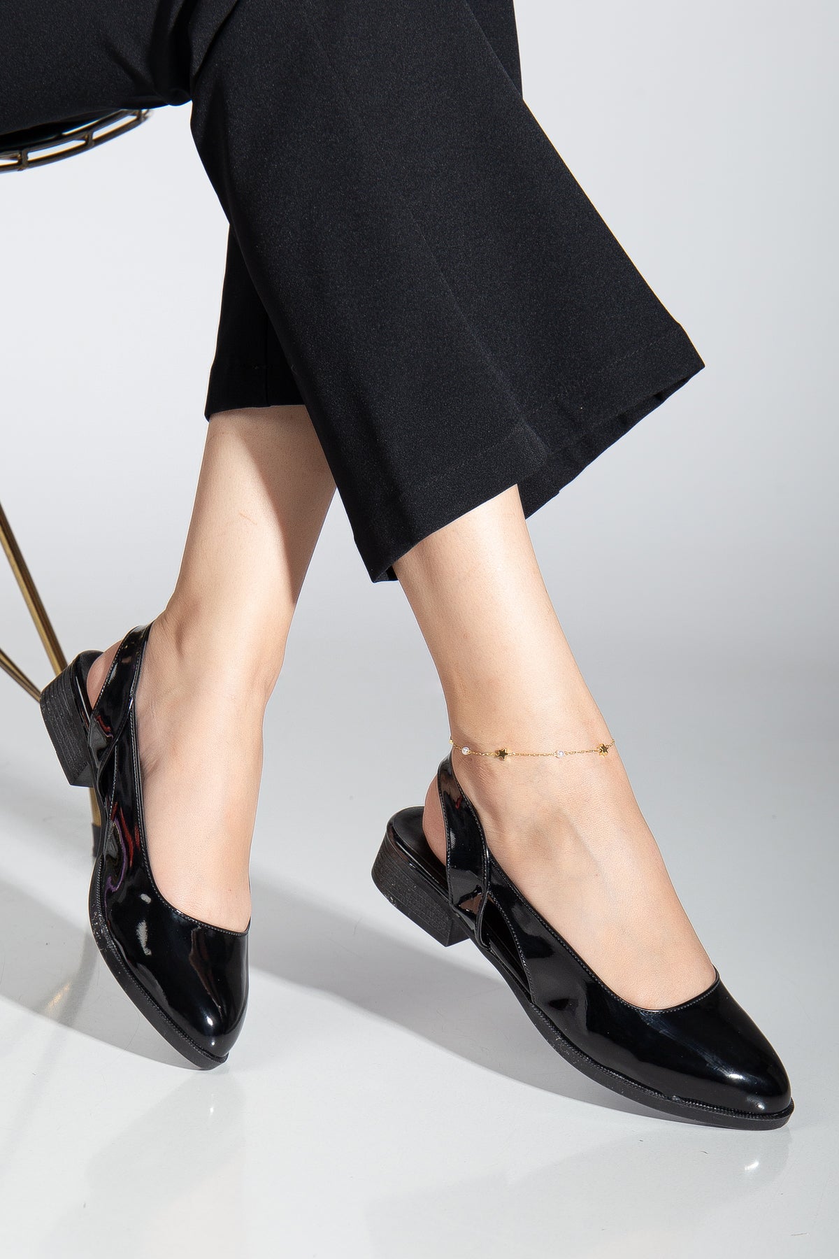 Pore Kısa Topuk Rugan Ayakkabı Siyah